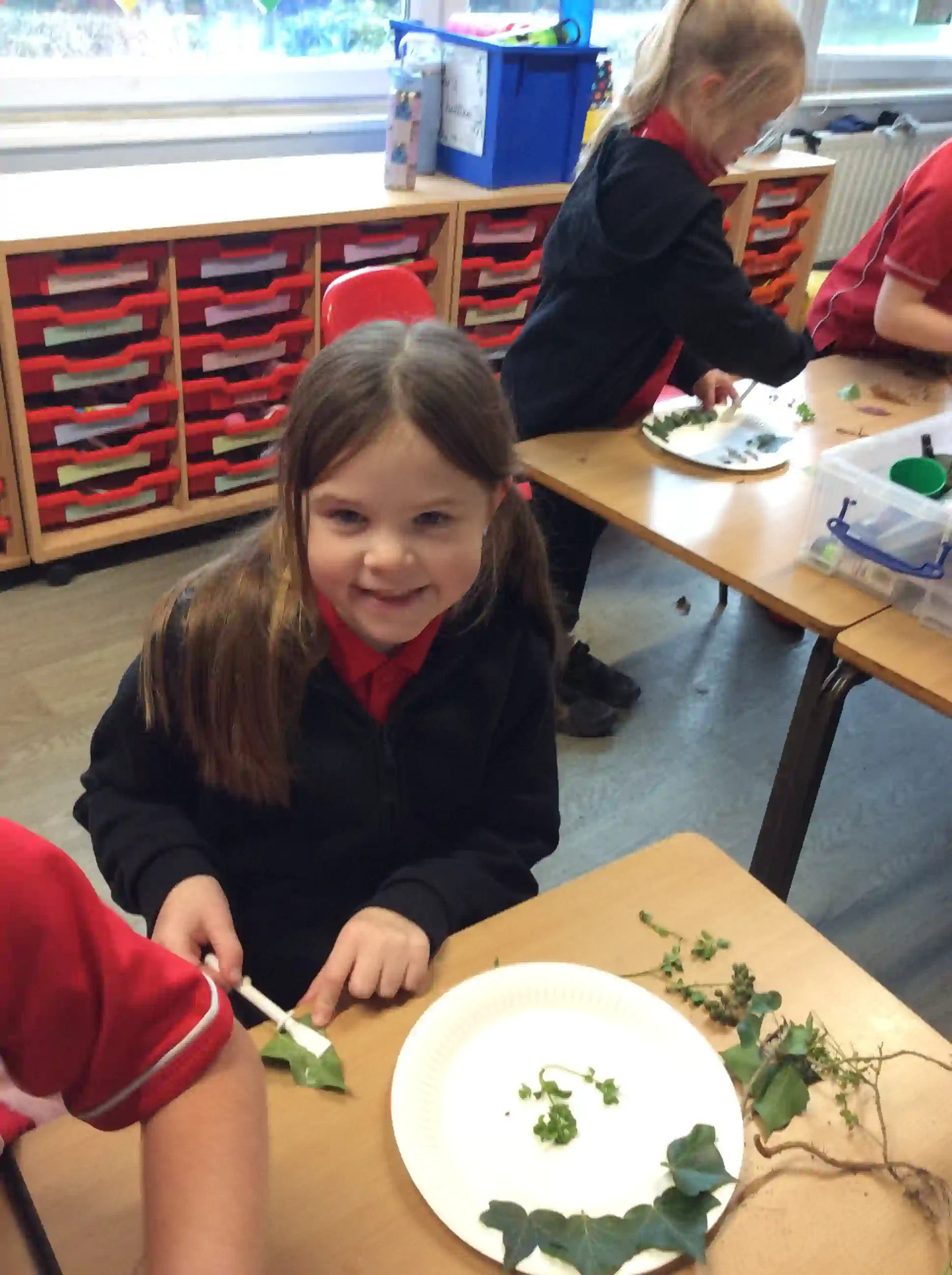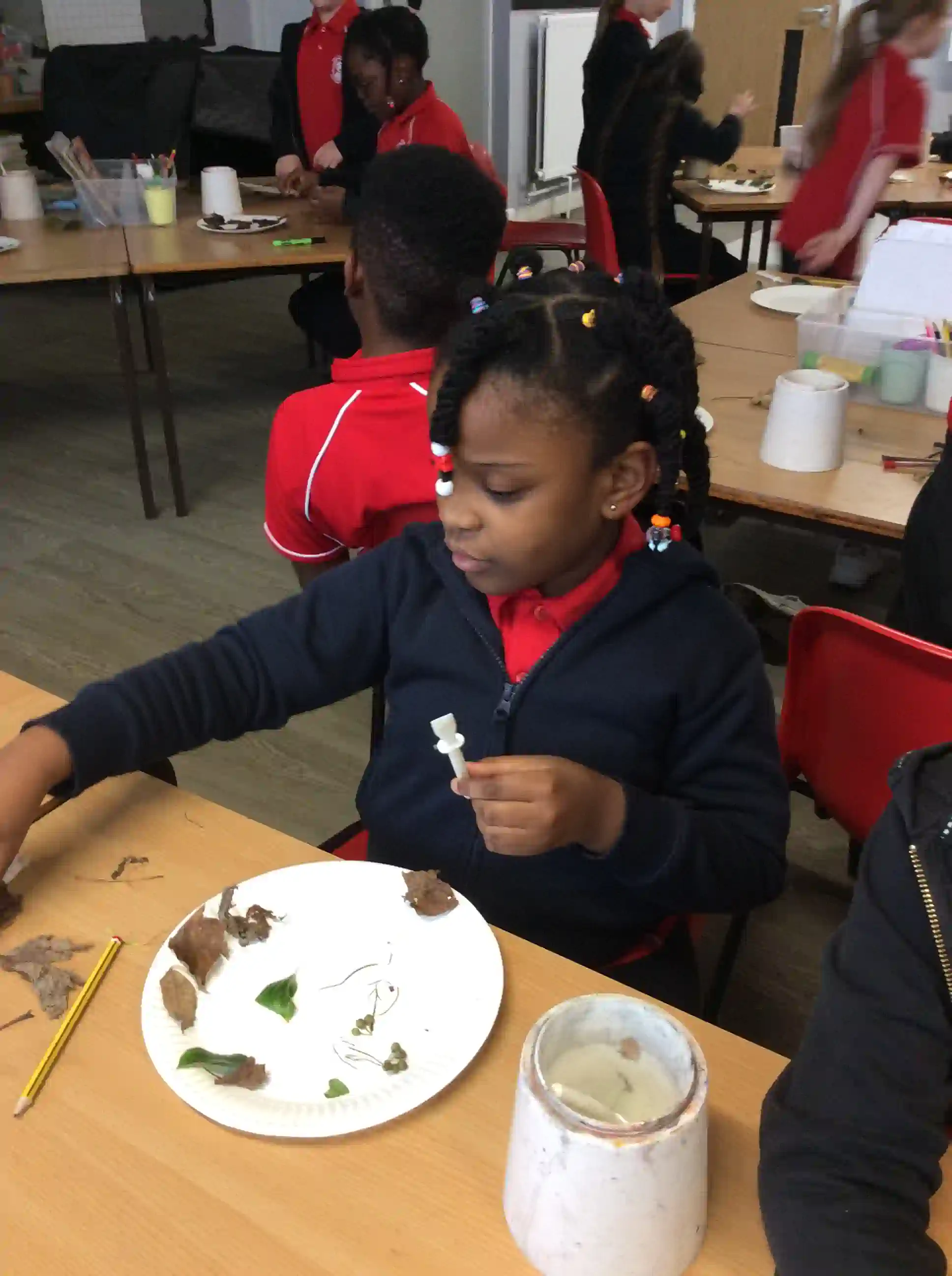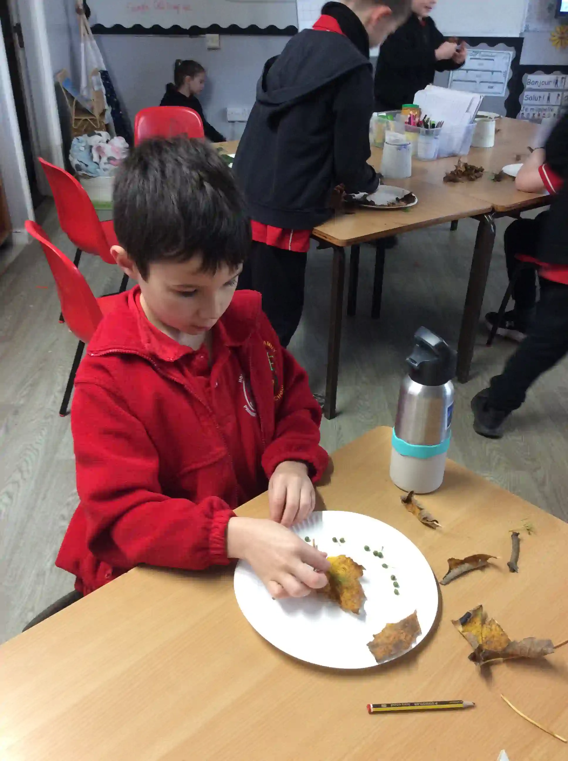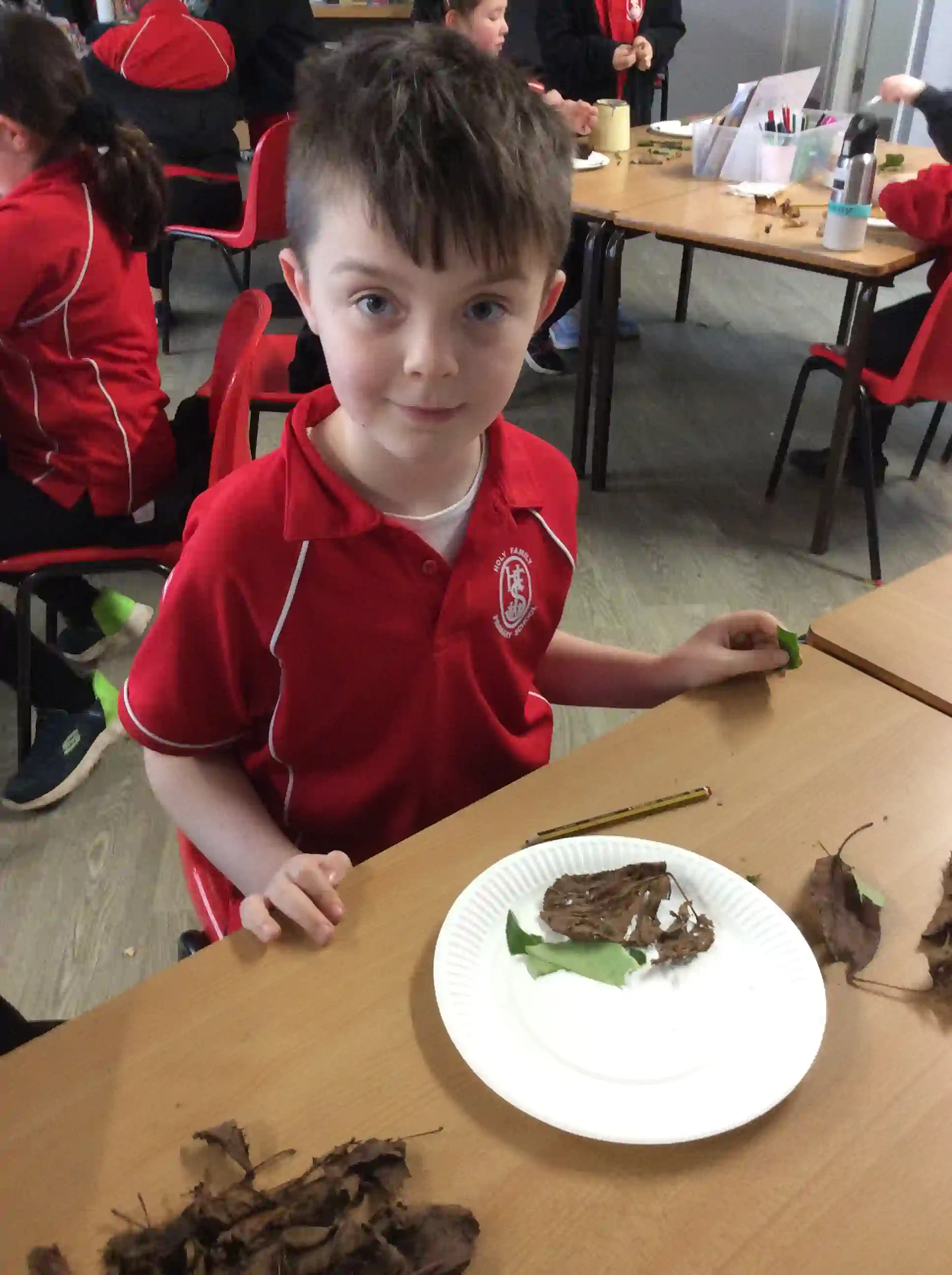 In this session today, we were celebrating friendship week/anti-bullying week by making kindness trees. We started with an empty tree template that was in desperate need of leaves to bring it back to life. The children foraged leaves from around the playground and wrote on them ways in which we can show kindness to other people such as sharing our resources and checking on people if they seem sad. We then filled our trees with kindnessl eaves.