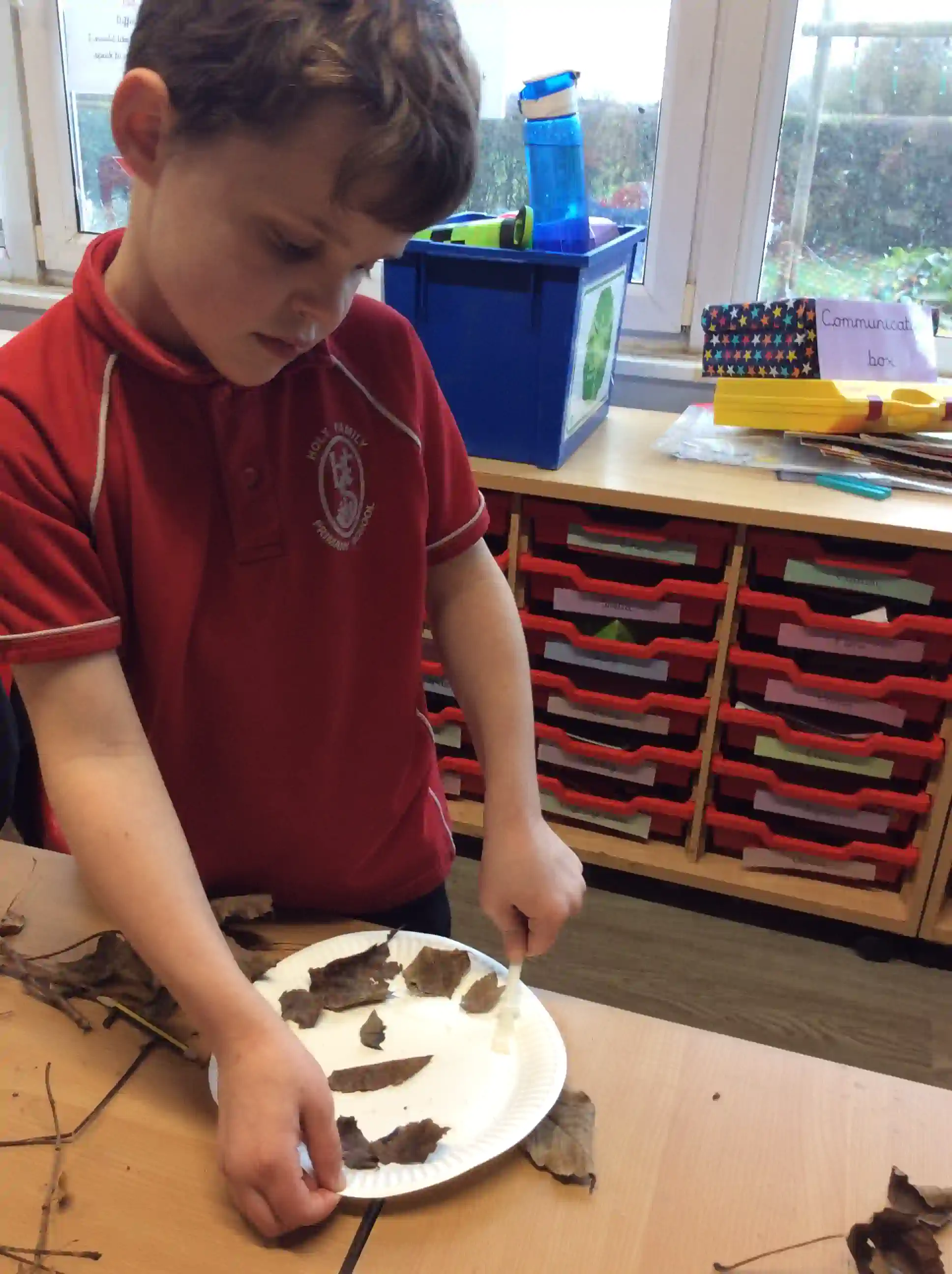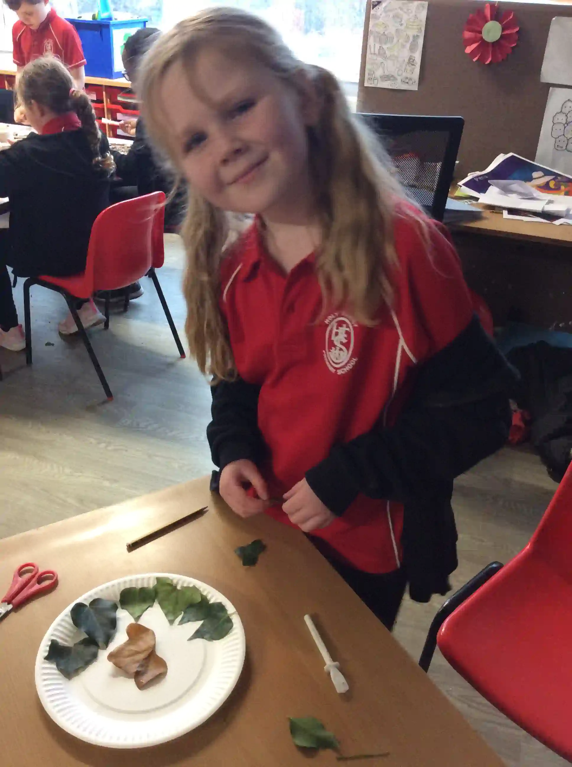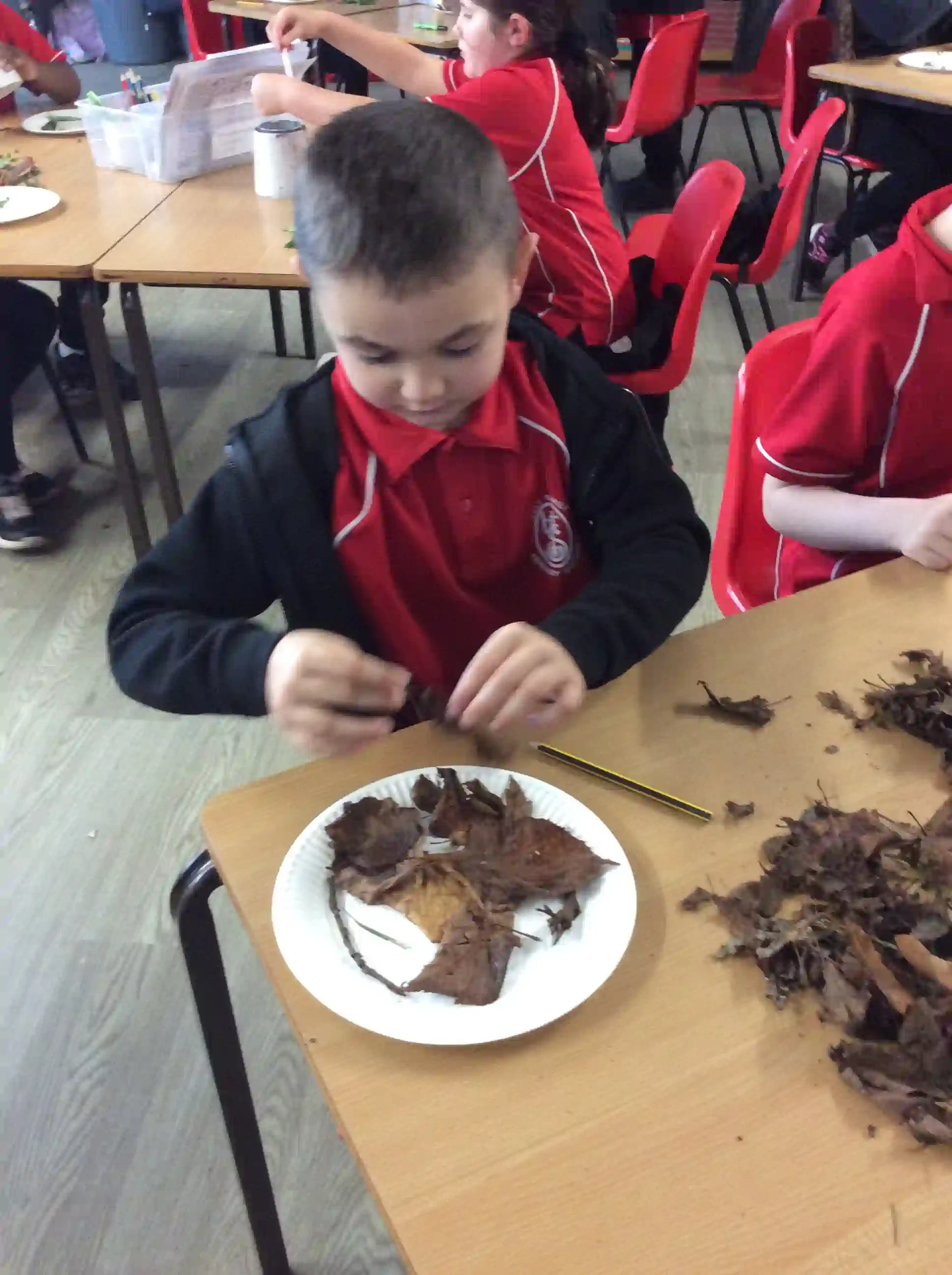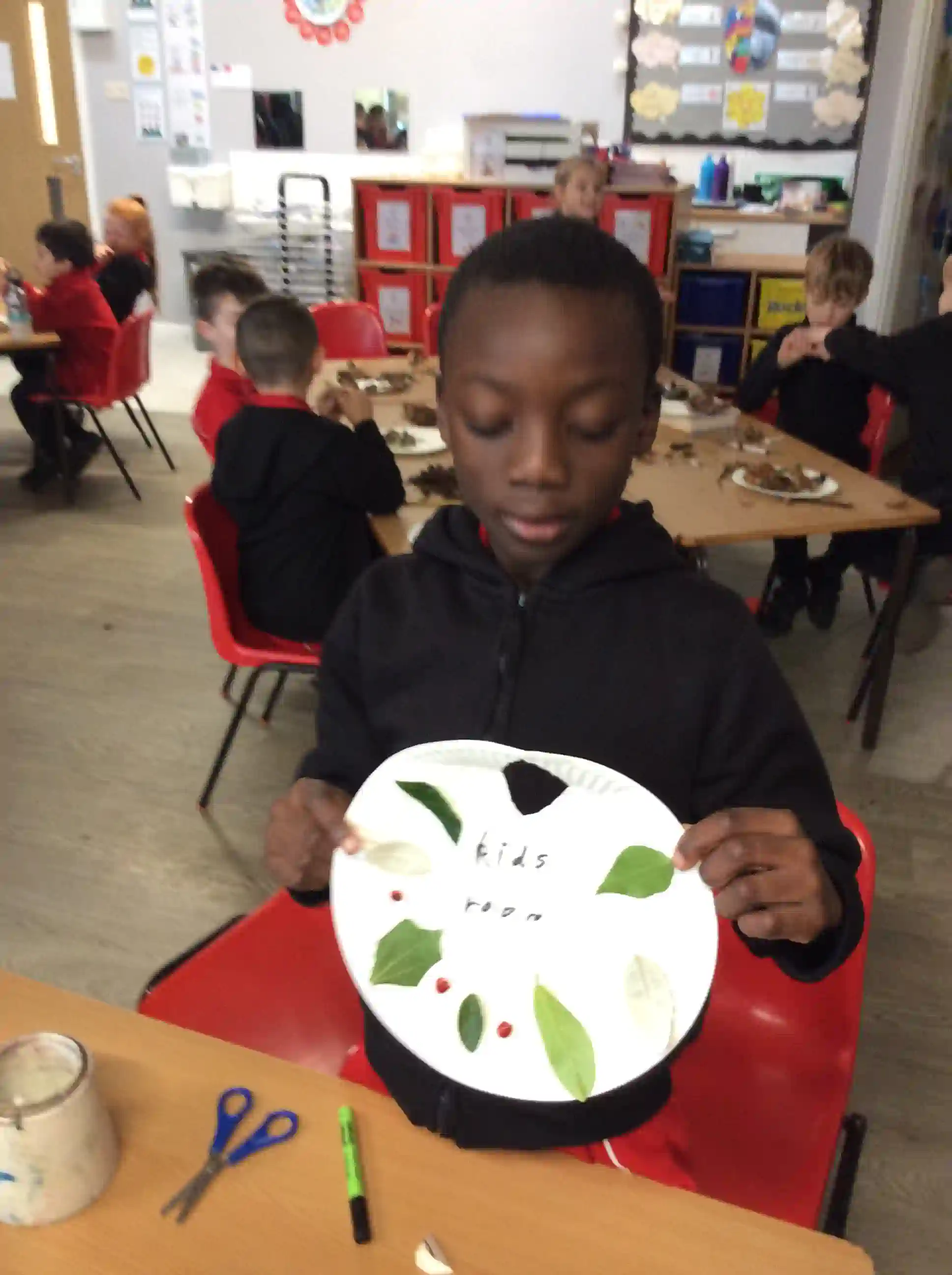 In this session today, we were celebrating friendship week/anti-bullying week by making kindness trees. We started with an empty tree template that was in desperate need of leaves to bring it back to life. The children foraged leaves from around the playground and wrote on them ways in which we can show kindness to other people such as sharing our resources and checking on people if they seem sad. We then filled our trees with kindnessl eaves.