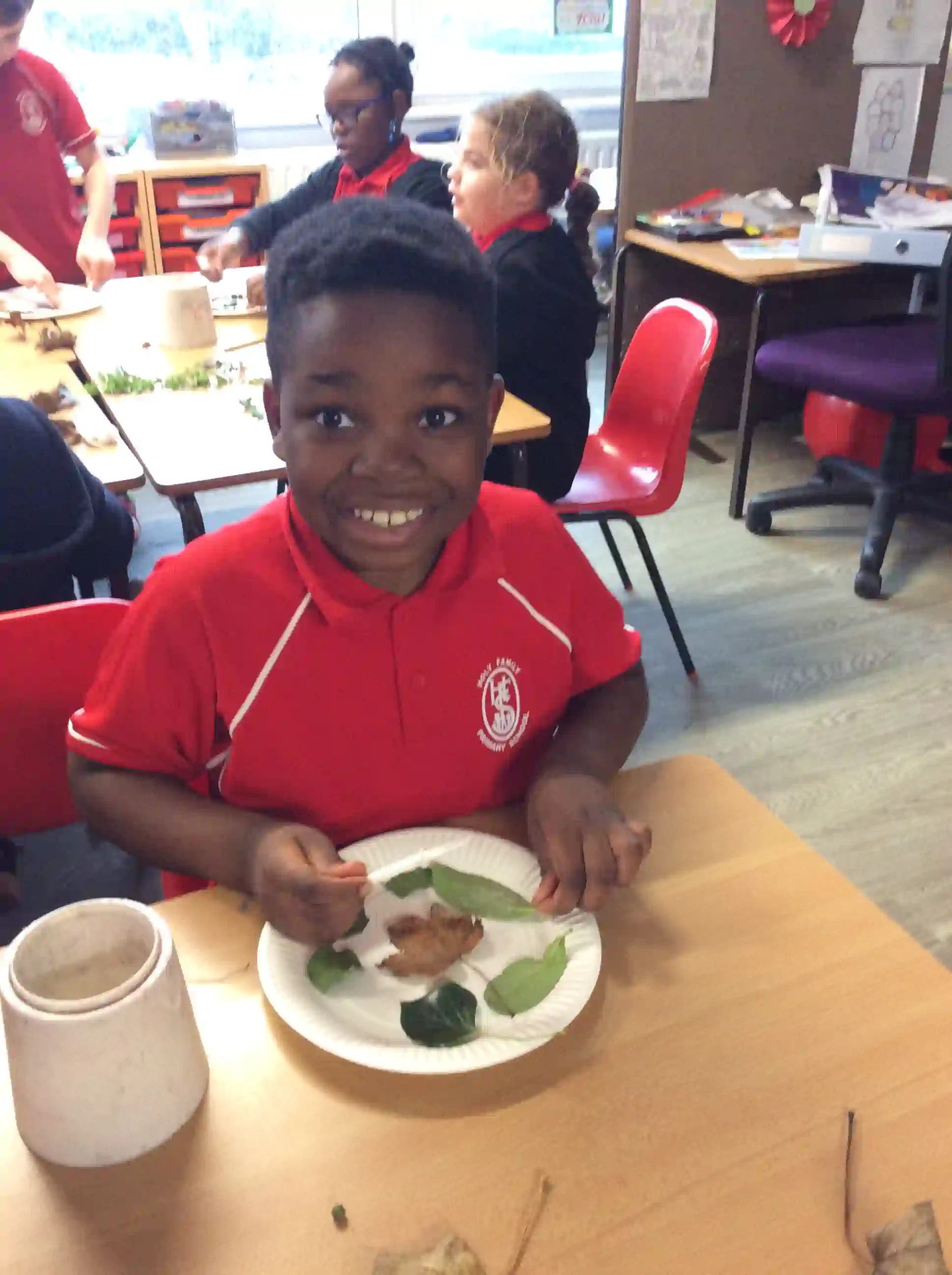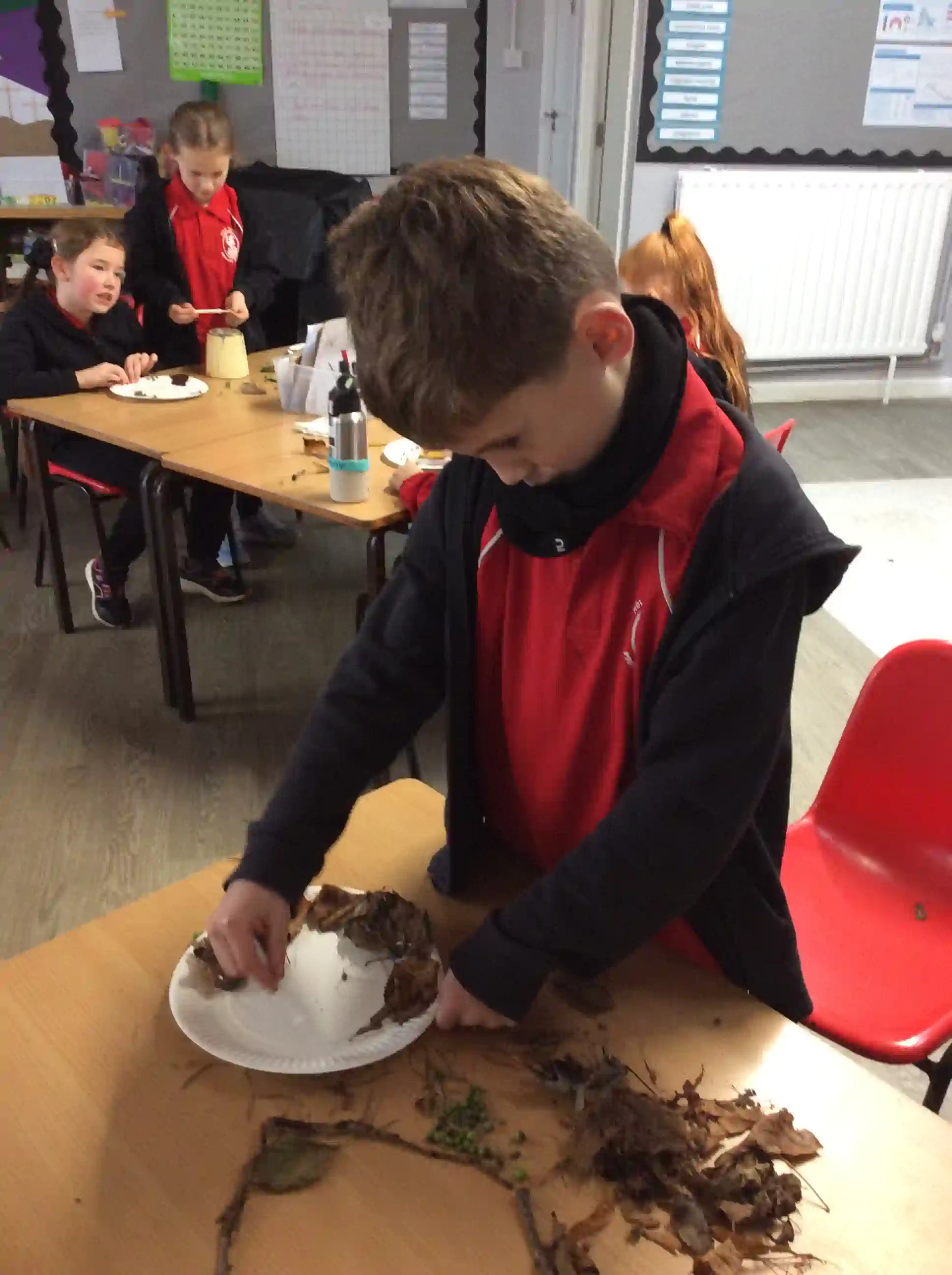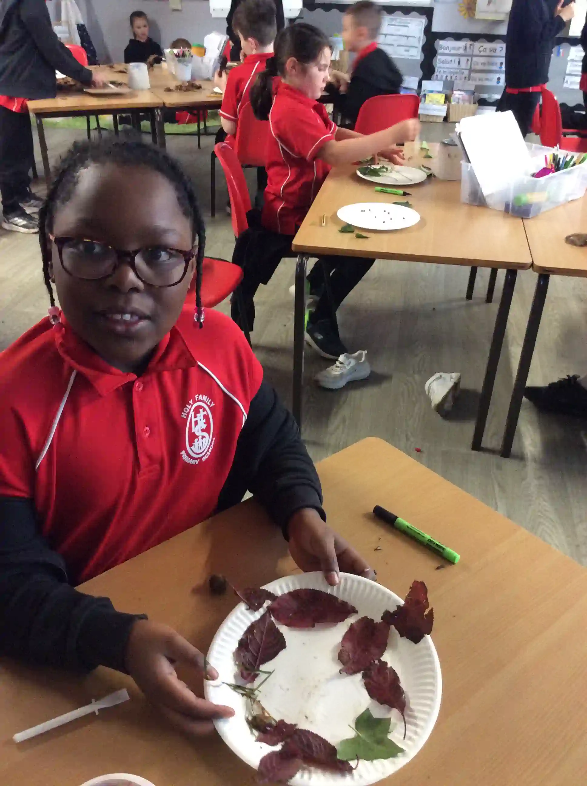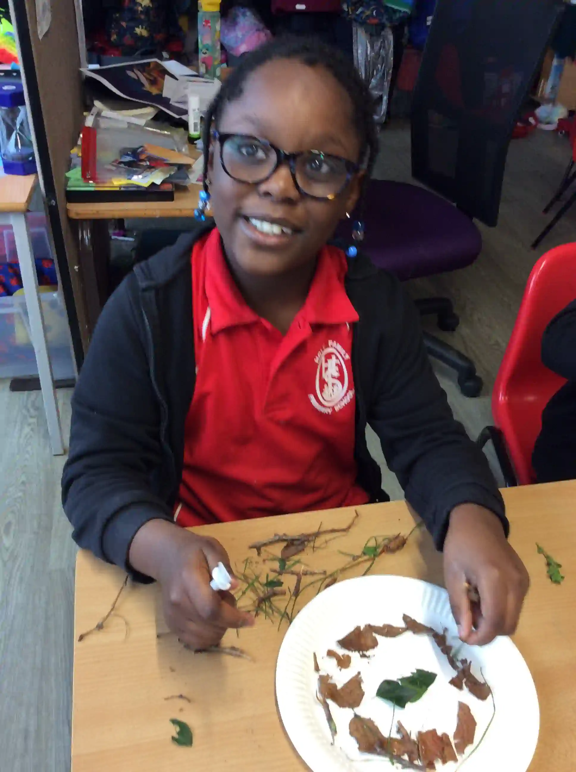 In this session today, we were celebrating friendship week/anti-bullying week by making kindness trees. We started with an empty tree template that was in desperate need of leaves to bring it back to life. The children foraged leaves from around the playground and wrote on them ways in which we can show kindness to other people such as sharing our resources and checking on people if they seem sad. We then filled our trees with kindnessl eaves.